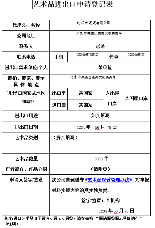 藝術(shù)品進出口申請表(模板)