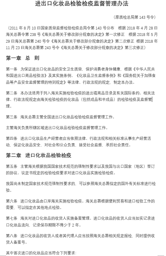 進(jìn)出口化妝品檢驗(yàn)檢疫監(jiān)督管理辦法