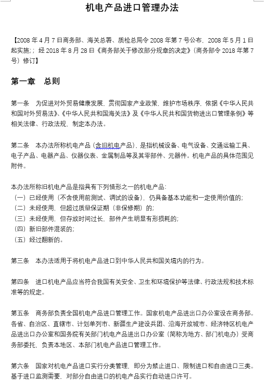機(jī)電產(chǎn)品進(jìn)口管理辦法
