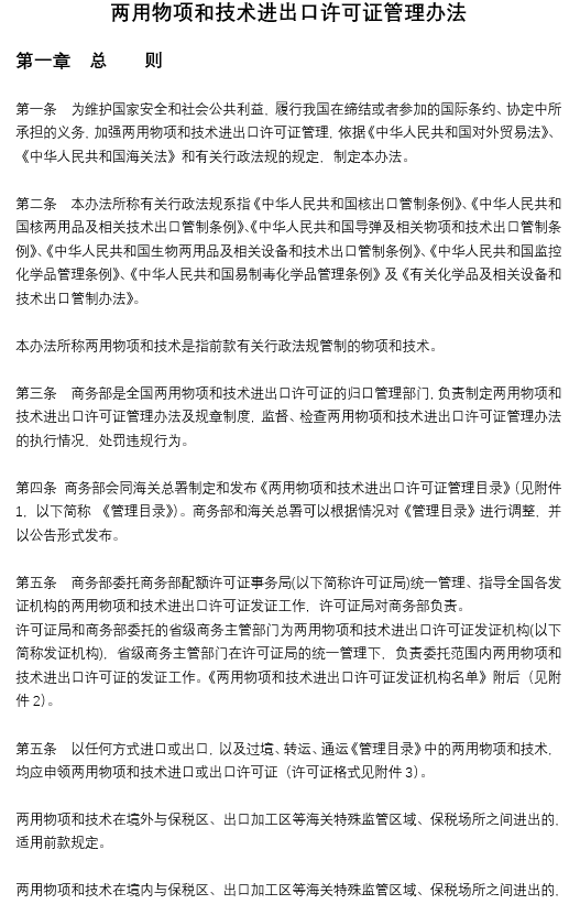 兩用物項(xiàng)和技術(shù)進(jìn)出口許可證管理辦法
