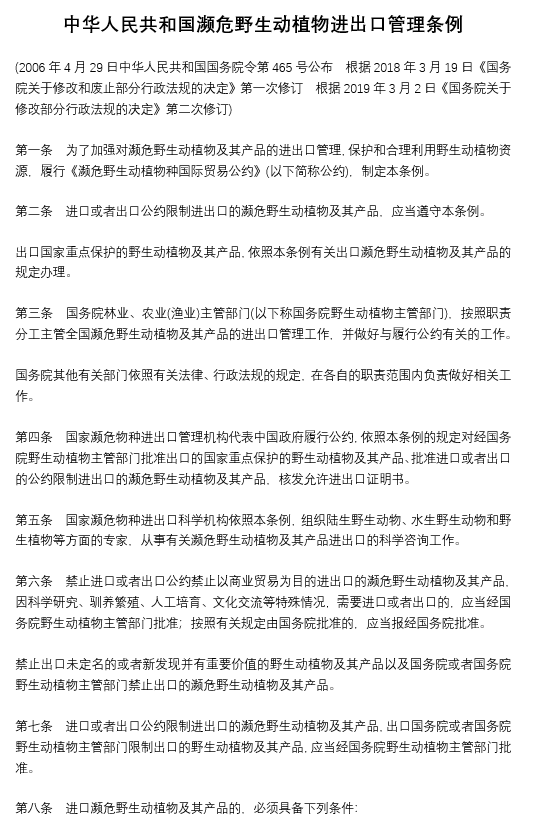 中華人民共和國瀕危野生動植物進(jìn)出口管理?xiàng)l例