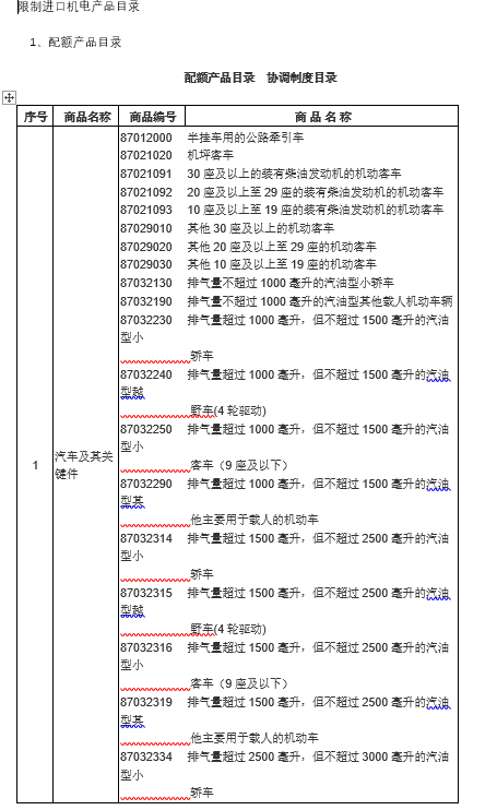 限制進口機電產(chǎn)品目錄