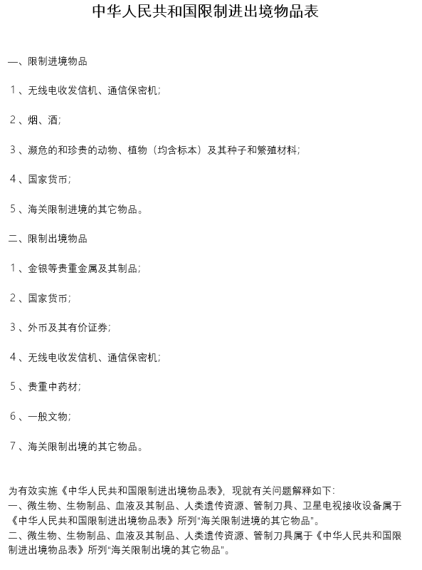 中華人民共和國限制進出境物品表