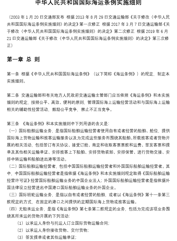 中華人民共和國(guó)國(guó)際海運(yùn)條例實(shí)施細(xì)則