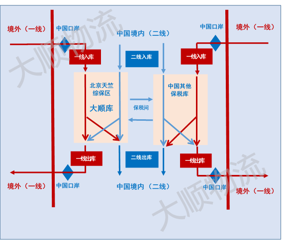 1) 收發(fā)貨人:發(fā)貨人是境外的企業(yè),收貨人為保稅庫的運營主體,比如,大順公司,視為名義收貨人。