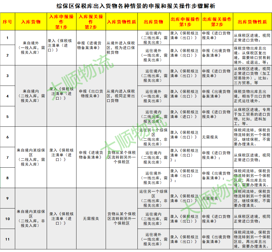 綜保區(qū)保稅庫出入貨物各種情景的申報和報關操作步驟解析如下: